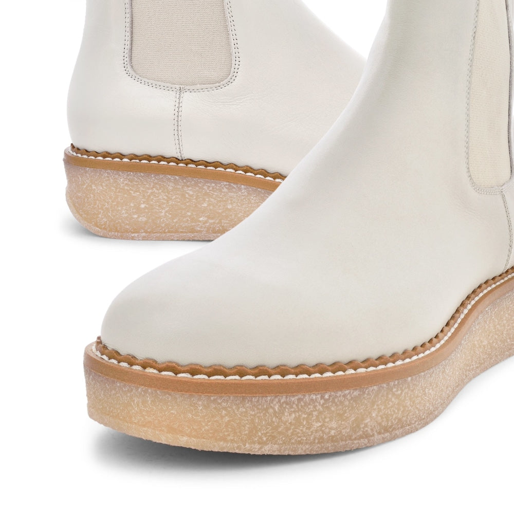 Get grooving with the ever-so-comfortable and fashionable ‘Machi’ chelsea boots from ‘Akaada’ in an ‘Off-White’ shade. Made in Italy with highly durable and one of the strongest soft nappa leather, these chic boots offer grace and glamour you never knew you needed. They feature a round toe, leather upper with a high top, and a chunky platform in a complimenting shade.